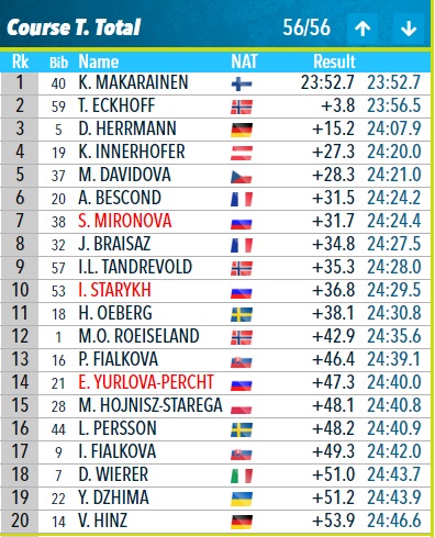 41,2), 28-е — Евгений Гараничев (5 промахов; +2.28,7).