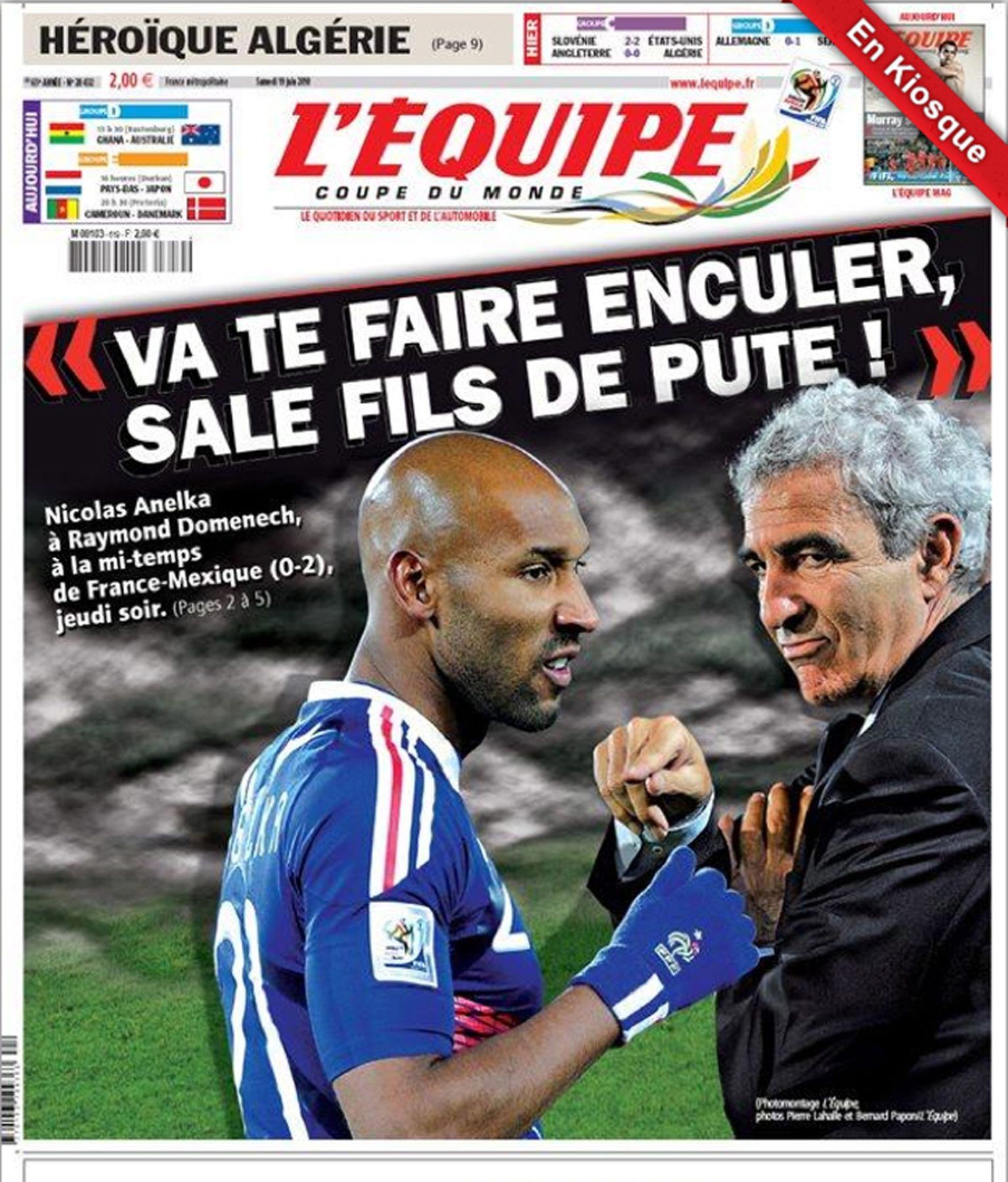 Кто-то из игроков не смог сдержаться и в красках описал случившееся знакомому журналисту. Скандал вышел из раздевалки, и реакция официальной делегации Федерации футбола Франции была вполне прогнозируема. Вице-президент ФФФ Кристиан Тентюрье сообщил, что после консультации с Доменеком было решено отчислить Анелька из сборной и отправить его домой.