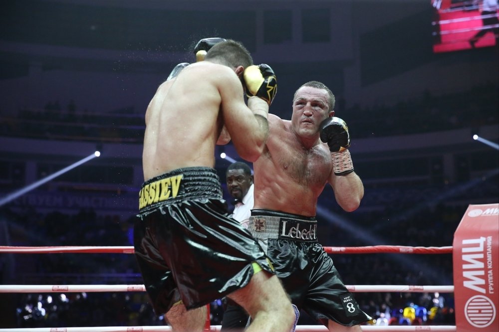 23-летний Гассиев отправил Лебедева в нокдаун в 5-м раунде мощным левым в корпус. У Лебедева были проблемы до конца пятого числа. Лебедеву очень повезло, что он вышел из раунда, потому что он снова и снова получал удары по корпусу от Гассиева, пока раунд не закончился. Можно возразить, что любые шансы Лебедева на победу в бою улетучились после 5-го числа, потому что весь его подход к бою изменился. Лебедев начал убегать от Гассиева, и драка напоминала игру в кошки-мышки.