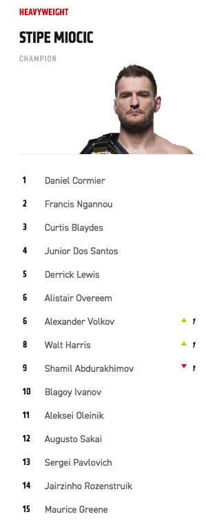 Пётр после поражения, которое стало для него третьим кряду, опустился со второго места на четвёртое. Также в топ-15 дебютировал Джонатан Мартинес, на UFC FN 221 победивший Саида Нурмагомедова.