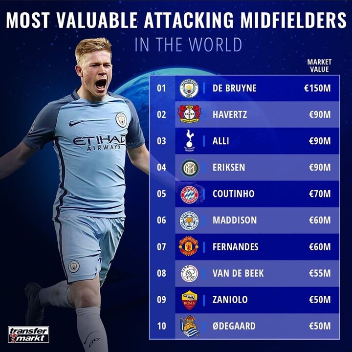 Самым высокооплачиваемым игроком в мире является бельгийский полузащитник Кевин де Брюйне, который, как сообщается, зарабатывает 483 032 доллара в неделю (20,8 миллиона долларов). Это делает его лучшим в лиге, превосходящим Холанда и Джека Грилиша.