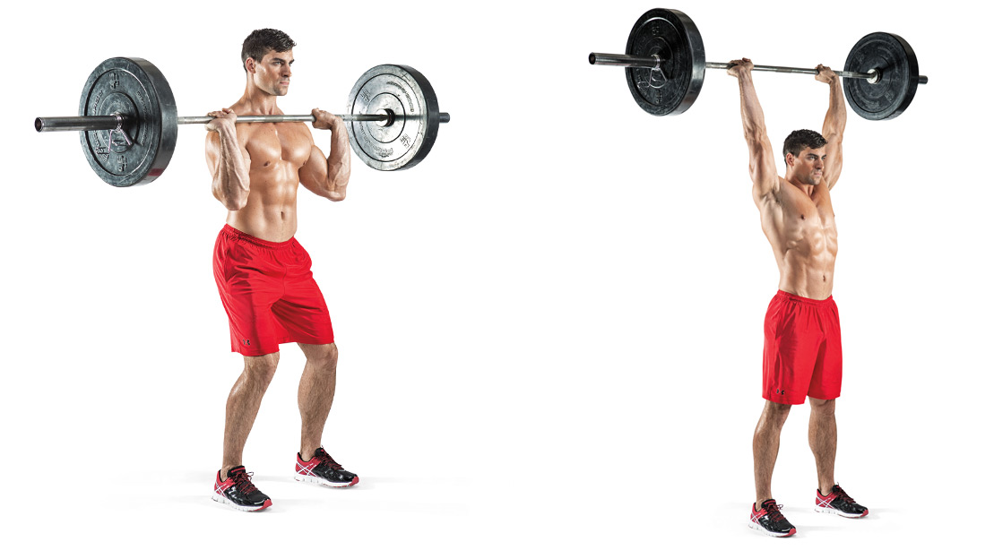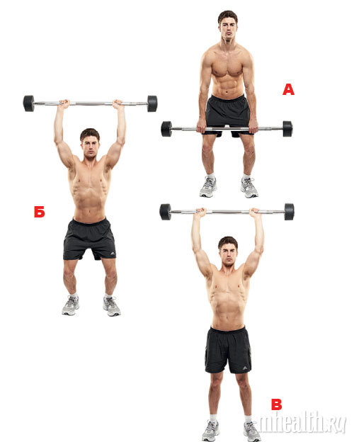 Толчок гири. Упражнение похоже на предыдущее, но здесь рука с гирей не выпрямляется вперед, а резко поднимается вверх, после закладывания веса на плечо. В этом упражнении особую роль играет толчок ногами, без которого вся нагрузка будет приходиться только на мышцы руки и плечевой пояс.