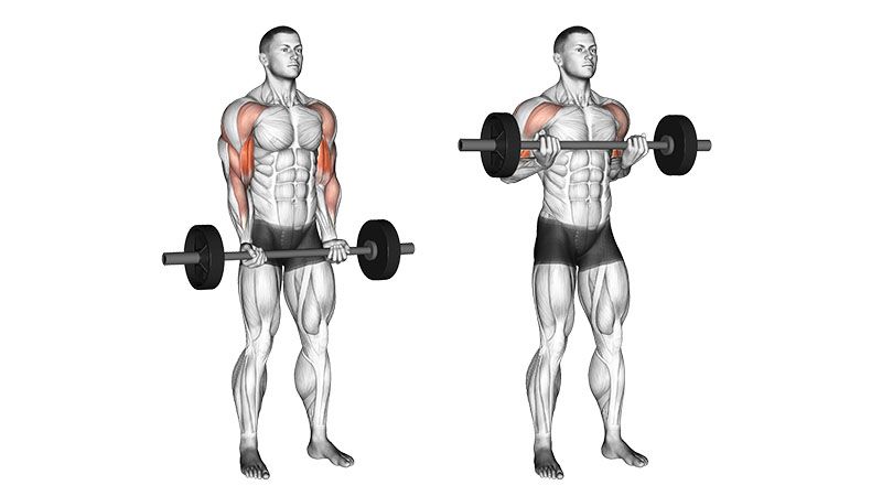 Когда вы берете штангу верхним хватом, то большая часть нагрузки перемещается с бицепса на мышцы плеча и предплечья. Нужно использовать этот хват, чтобы поднять верх бицепса.