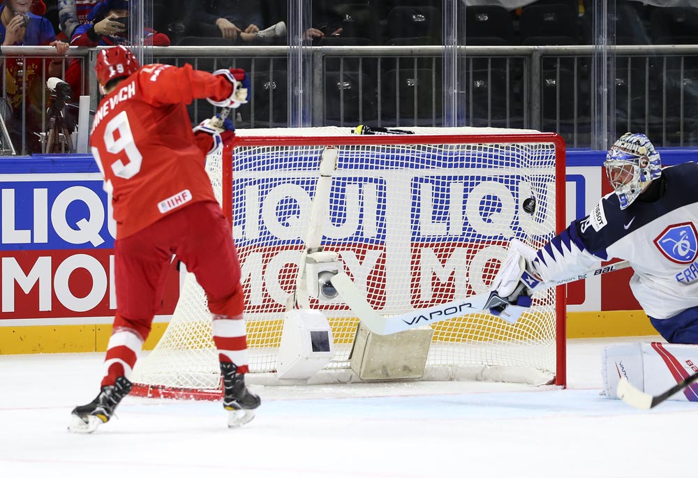 секунды после ничьей вбрасывания Роман Абросимов решил забросить шайбу в ворота, и его усилие пролетело над совершенно незамеченным Николаевом.