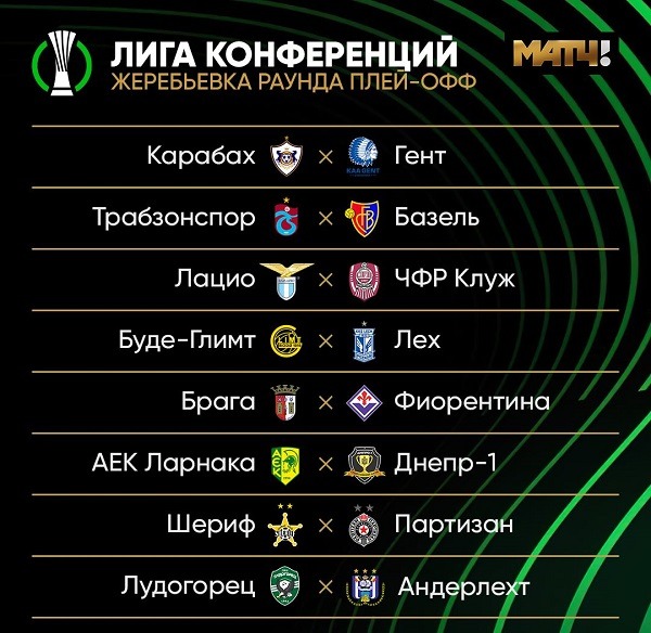 Матчи запланированы на 22 августа, среда. Время матчей московское.