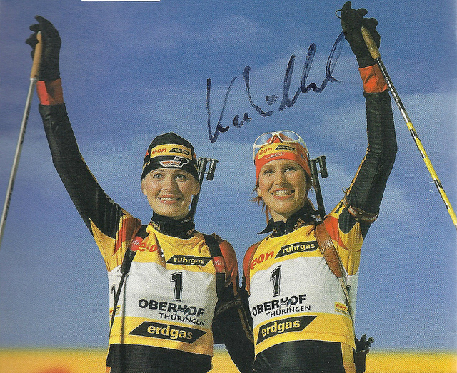 Второй ребенок в семье (старший брат Йенс (Jens), на 11 месяцев старше и сестра Аннет (Annett), на 3 года младше). Уже с раннего возраста зимние виды спорта были составляющими ее жизни. По рассказам ее мамы где-то в полтора года стала на лыжи.