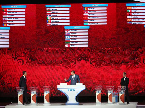 Шары с названиями команд достают из корзин Лоран Блан, Гордон Бэнкс, Мирослав Клозе, Фабио Каннаваро, Кафу, Диего Марадона, Карлес Пуйоль, Диего Форлан. Кроме того, в церемонии принимает участие первый вице-президент РФС Никита Симонян.