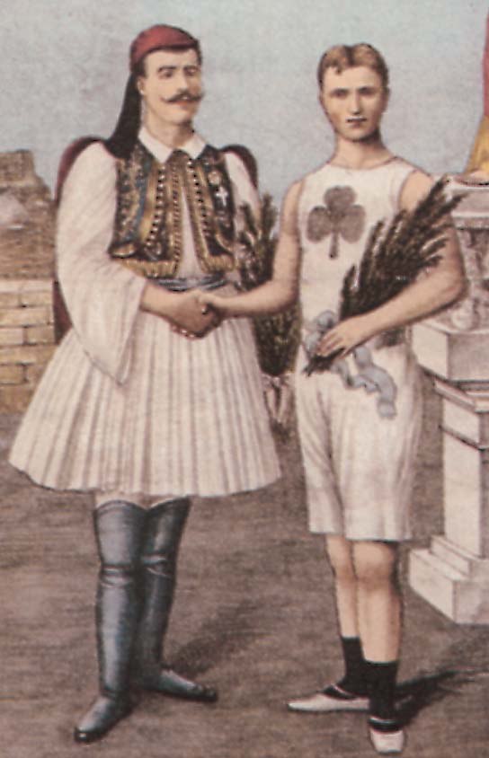 6 апреля 1896 года пушечным выстрелом открылись первые летние Олимпийские игры в Афинах. Ввысь взметнулись звуки олимпийского гимна, сопровождаемого ангельским пением женского хора. На мраморном стадионе в присутствии восьмидесяти тысяч зрителей король Греции Георг I объявил об открытии Олимпиады.