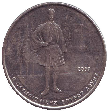 В 2004 в Афинах проходили XXVIII летние олимпийские игры. Накануне, в 2000 году в Греции была выпущена в обращение юбилейная монета номиналом в 500 драхм. На монете в полный рост изображен национальный герой Греции, олимпиец Спиридон Луис.