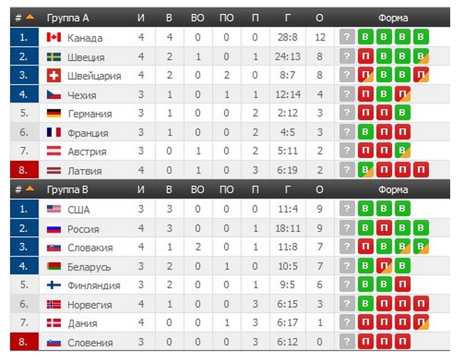 В группе А в четвертьфинал вышли сборные Финляндии и Швейцарии.