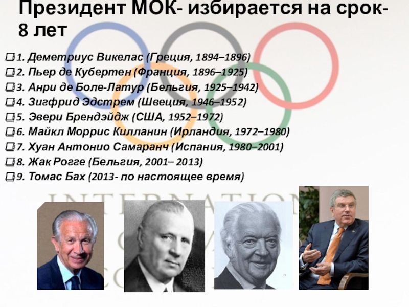 Кроме того делегаты опасались, что в случае ожидания до 1900 года общество утратит интерес к Играм, поэтому еще одним из решений когресса было провести Игры в 1896 году, а Парижу доверить право проведения в 1900 году II Олимпийских Игр. Деметриус Викелас, согласно тогдашним правилам МОК, был избран Президентом МОК как представитель страны, принимающей следующие Олимпийские игры.