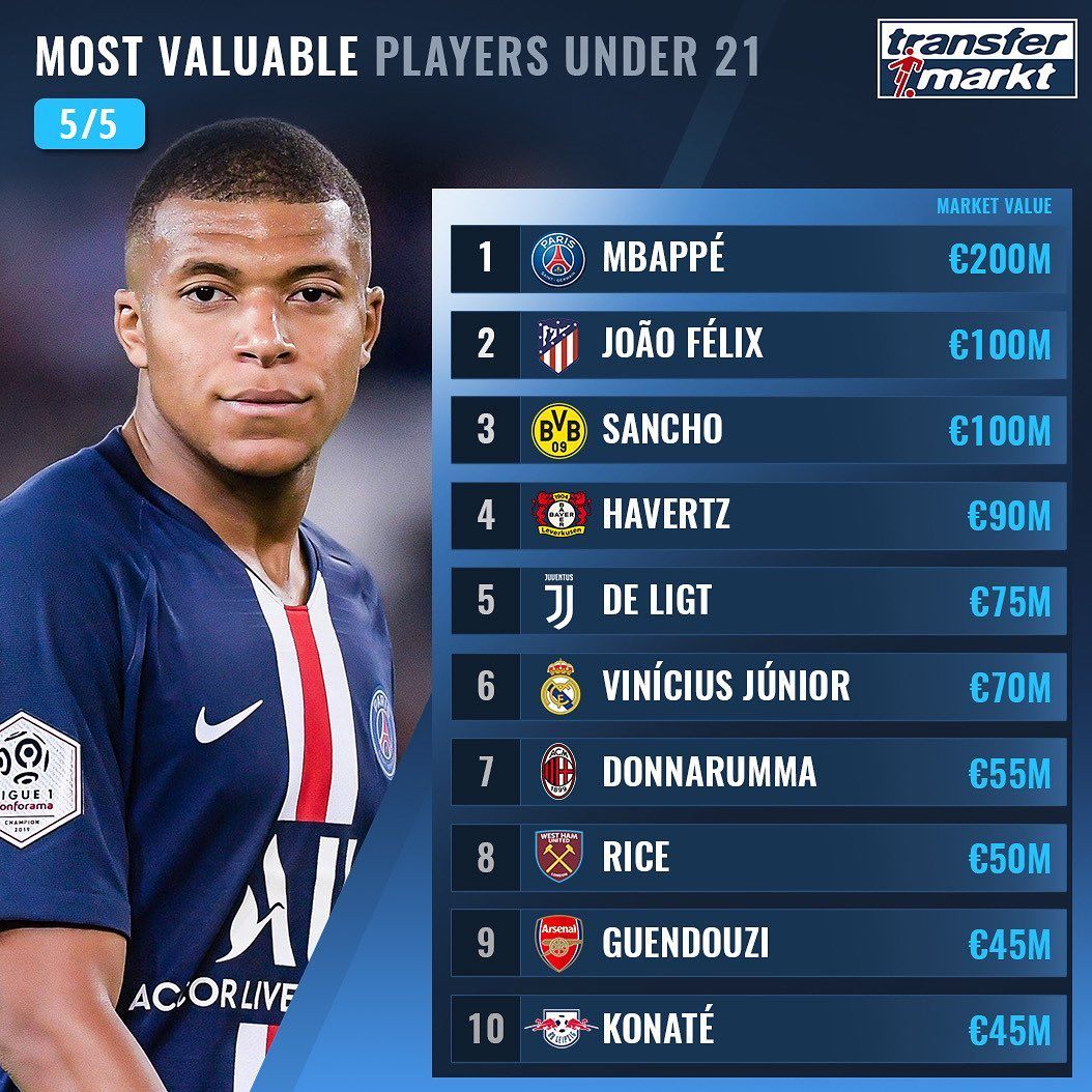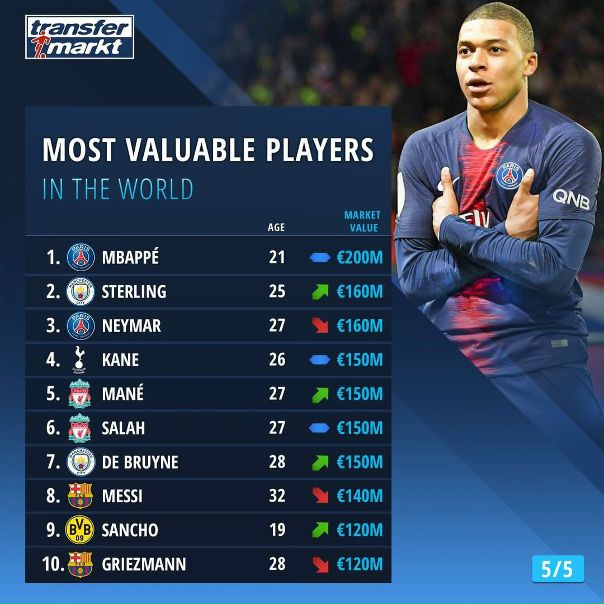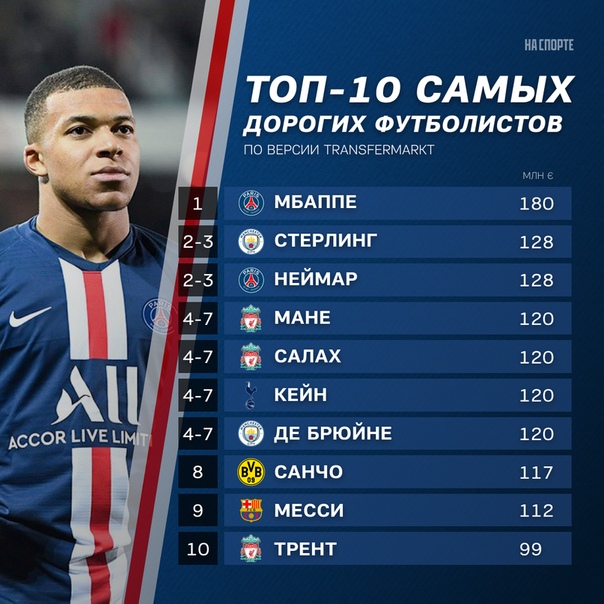 Килиан Мбаппе — ПСЖ (Франция), €205,6 млн