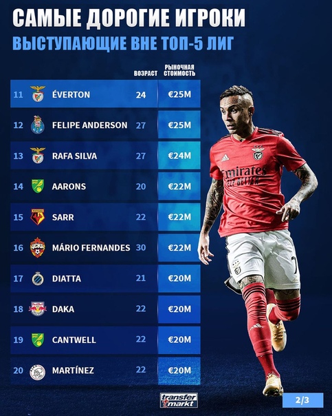 2-е место. Винисиус Жуниор — «Реал» (Испания), €185,3 млн