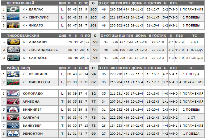 Результаты матчей: Колорадо Эвеланш