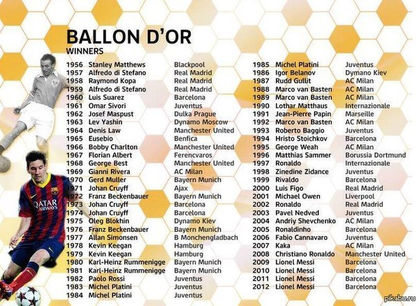 Обладатели Золотого мяча за всю историю (список по годам) – SportsHeroes.ru