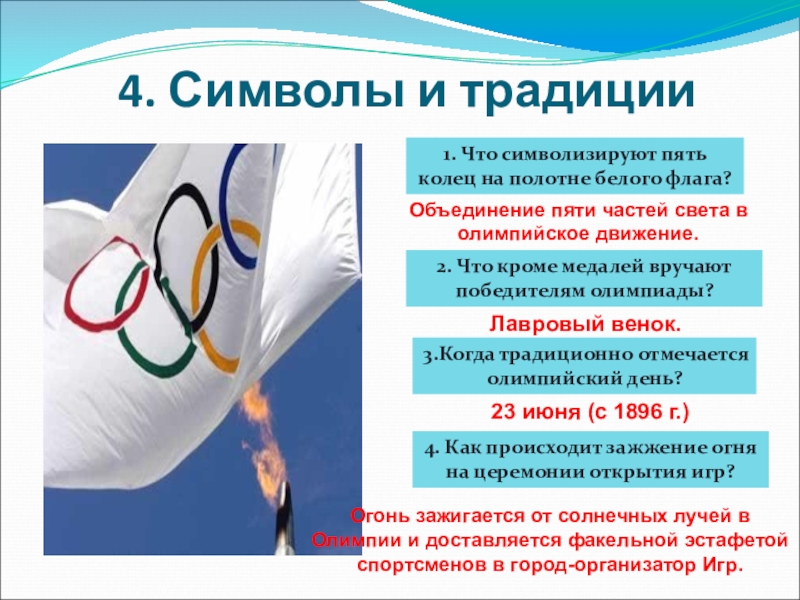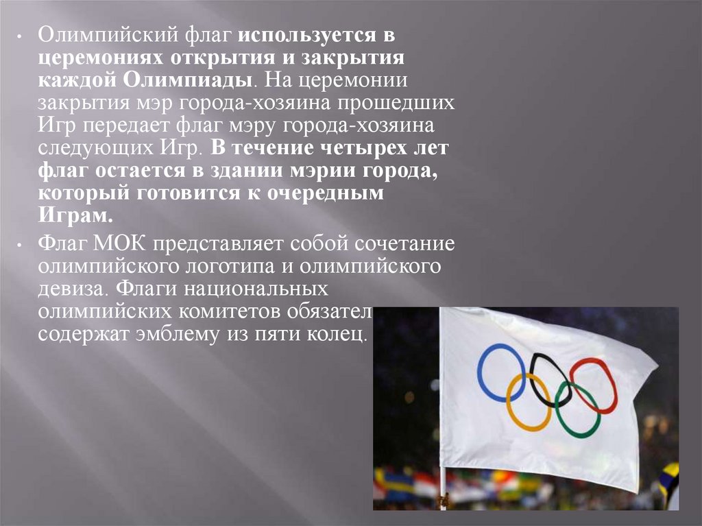 флаге, олимпийском огне.