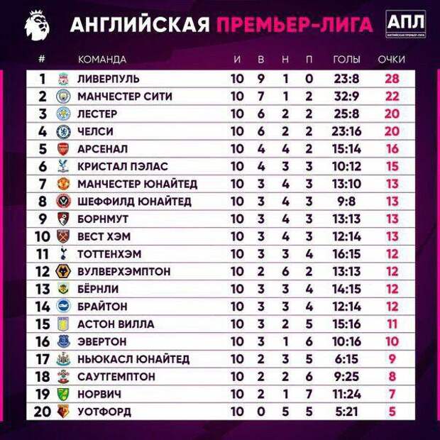 | APL | 16. | Ливерпуль | — : — | Манчестер Юнайтед | |||