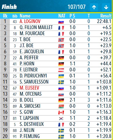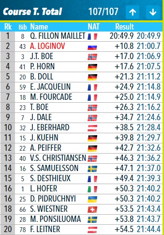 Если эти имена звучат знакомо, то это потому, что сегодняшний подиум был копией воскресного подиума преследования. В то время как фанаты привыкли видеть Бо и Легрейд на золотых и серебряных позициях, необычно видеть повторный подиум в личном зачете. Стрельба играет настолько важную роль в личном деле, что трудно предсказать результаты.