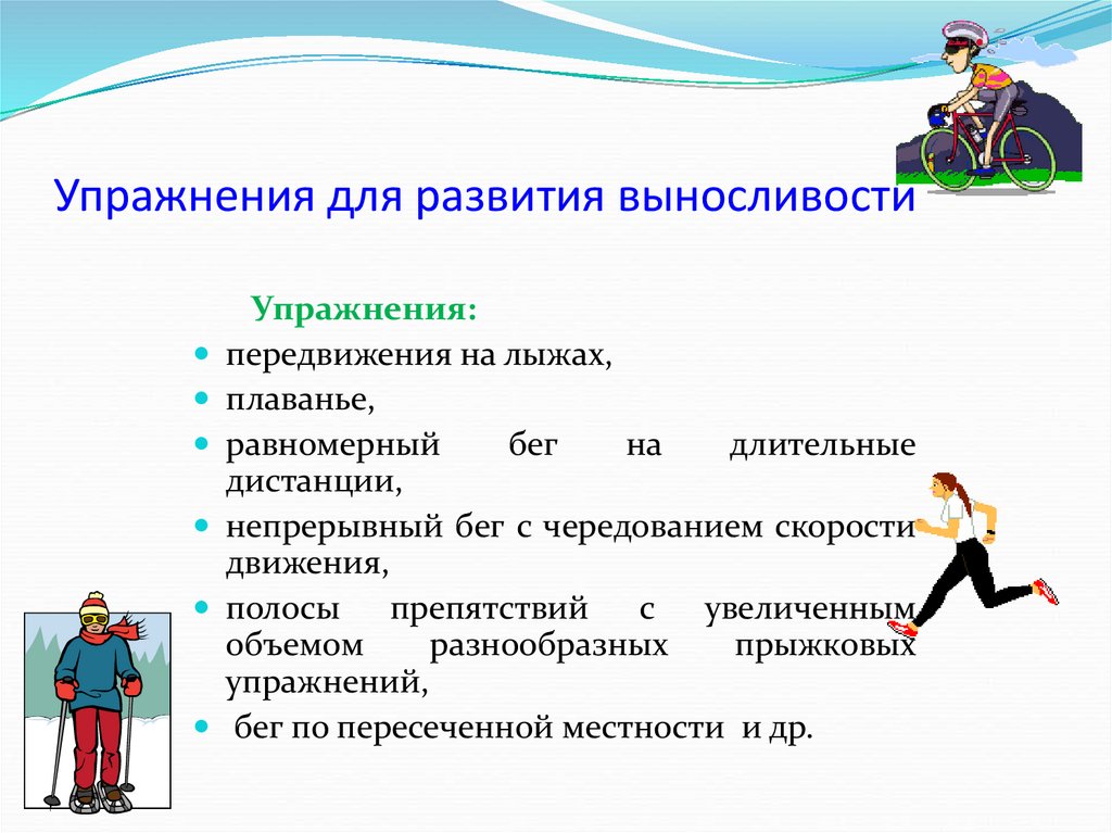 Для улучшения выносливости применяют различные виды нагрузок: