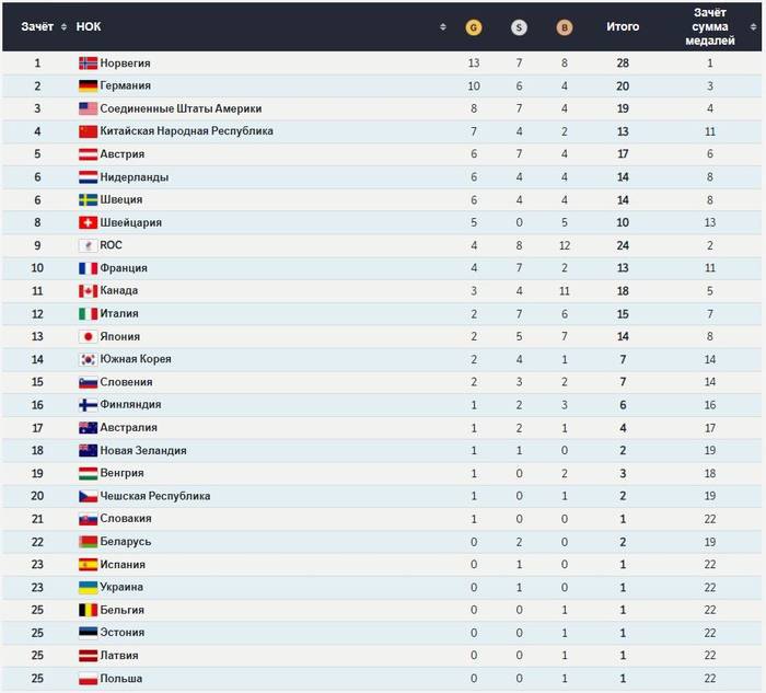 Вот обновленный список медалей и турнирная таблица: