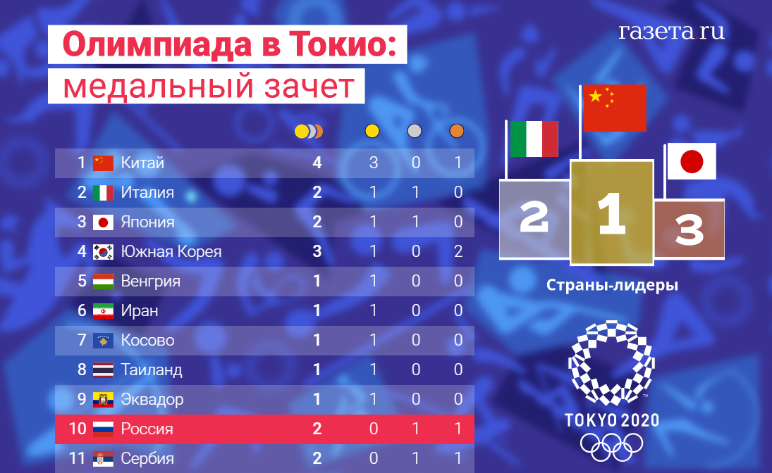 Лидируют в медальном зачете китайцы.