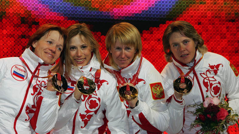 Женская сборная России по лыжным гонкам завоевала золото в эстафете 4х5км