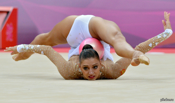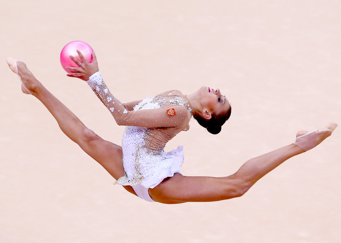 Конторсионисты могли бы позавидовать гибкости, которую Дмитриева продемонстрировала во время упражнения с мячом, делая шпагат с высоко поднятыми ногами и удерживая мяч затылком. И ей следует подумать о том, чтобы придерживаться своего клубного распорядка в Рио, программа самбы наверняка будет хитом.