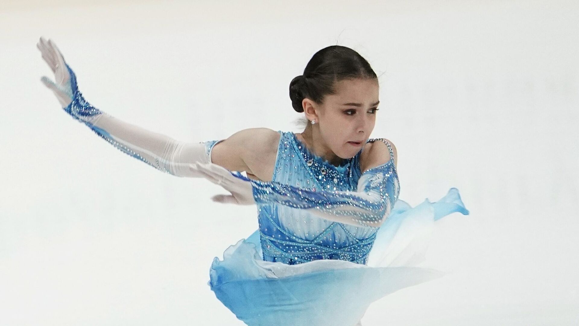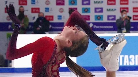 Загитова набрала 80,58 балла, в то время как другая юная фигуристка из, казалось бы, бесконечной конвейерной ленты России, Софья Самодурова, занимает второе место с результатом 67,40.
