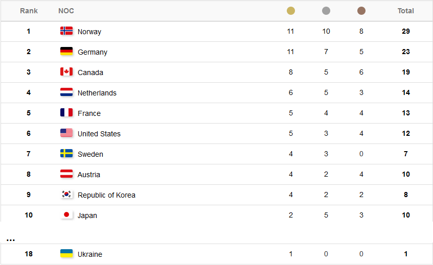 Медалей, завоеванных в Пхёнчхане: 23 ее успех на зимних Олимпийских играх вряд ли можно сравнить с ее доминированием на летних Олимпийских играх, когда команда имеет вдвое больше медалей, чем страна, занявшая второе место.