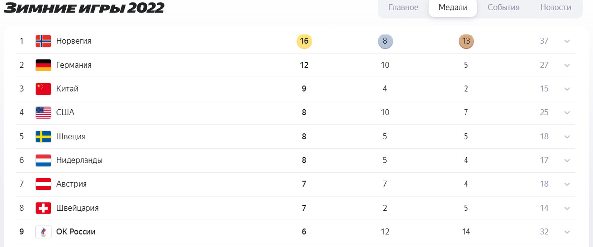 Сбор медалей