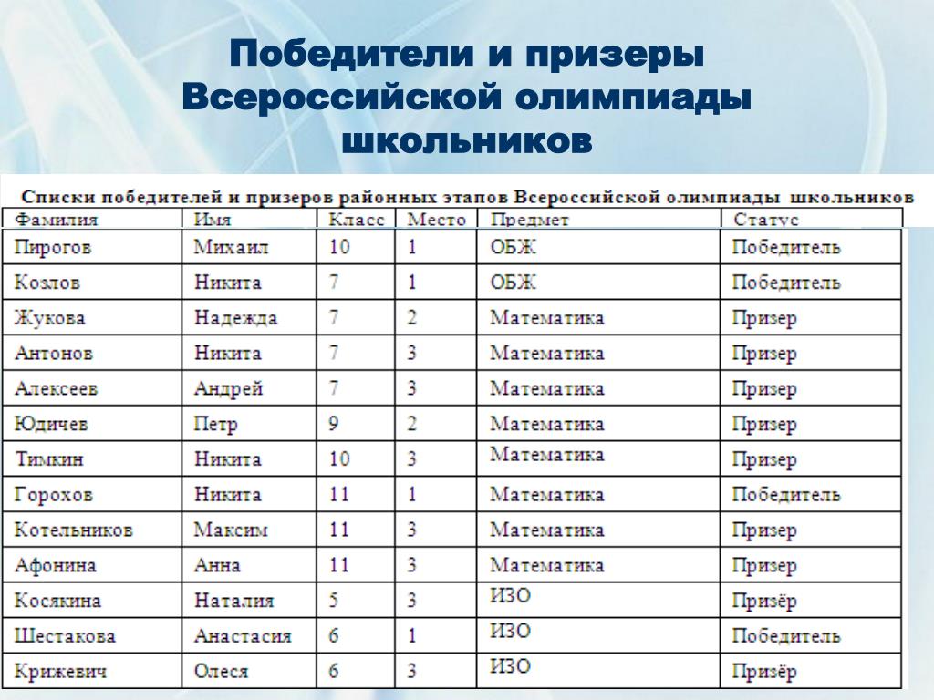 Призёры и победители Всероссийской олимпиады