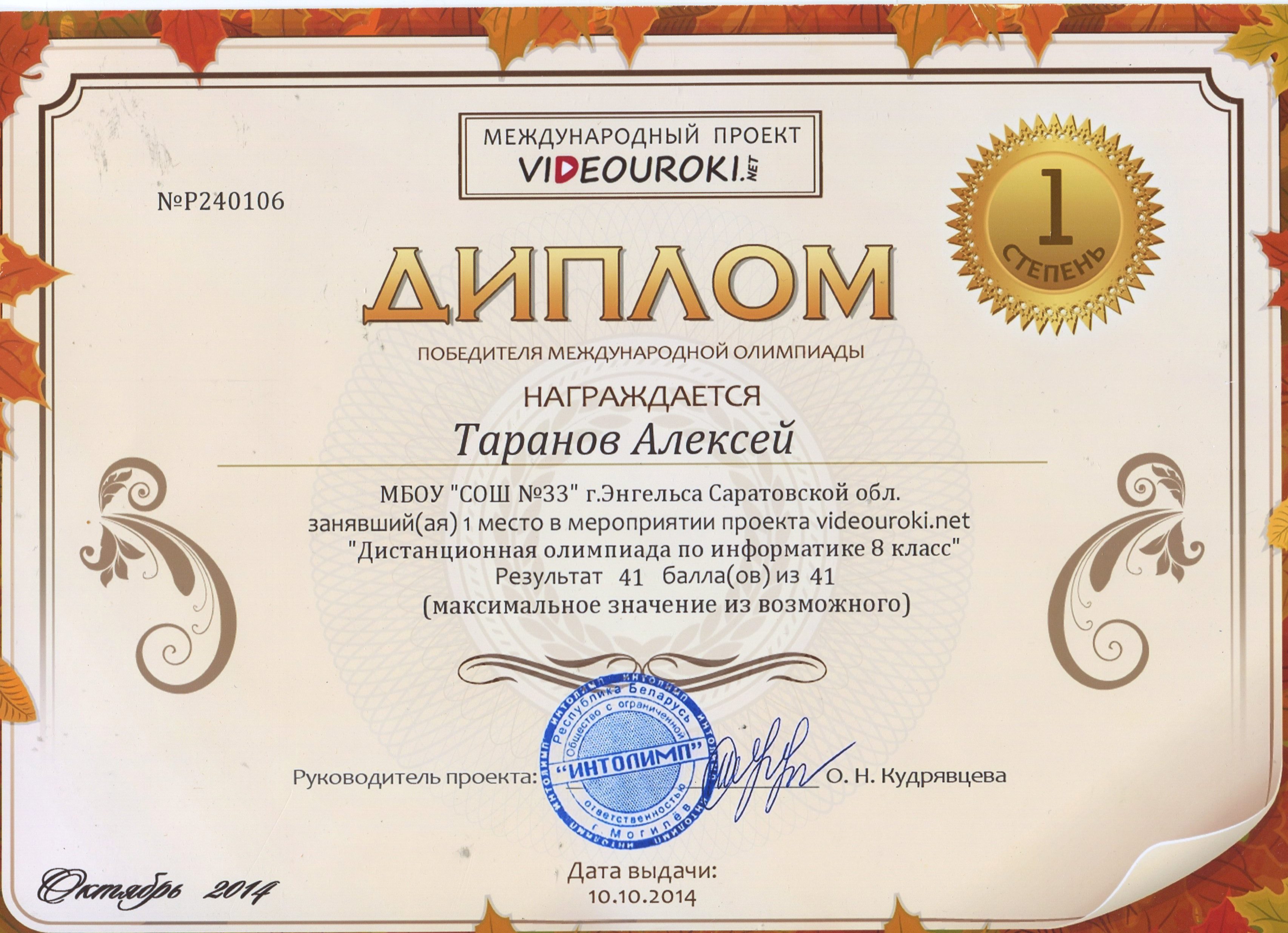 И, наконец, дипломанты олимпиады 7-10 классов имеют право в следующем году принять участие сразу в заключительном этапе, минуя отборочный.