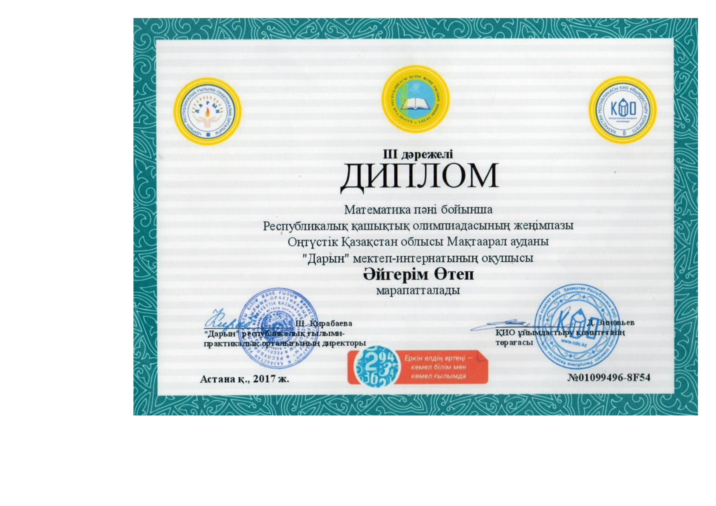 Результаты объявляют в конце апреля. Дипломы, которые открывают двери университетов страны, получают не только победители, но и призёры. Количество призёров и победителей обычно не превышает 25% процентов от количества участников заключительного этапа.