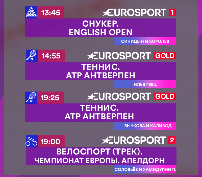 Программа евроспорт 1 2 на неделю: Eurosport 1 — программа телеканала на сегодня и на завтра, программа ТВ-передач канала на неделю (Минск)
