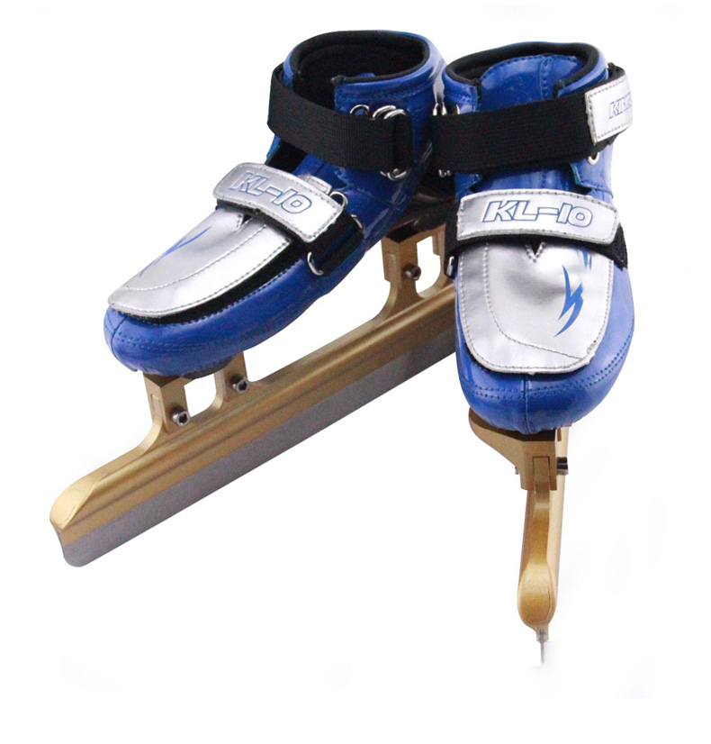 Подвижные коньки (в отличие от классического бега) запрещены. Шорт-трековые коньки обычно асимметричны – это позволяет проходить повороты буквально «впритирку» к земле. Из прочего снаряжения – шлем, щитки, перчатки и защита шеи.
